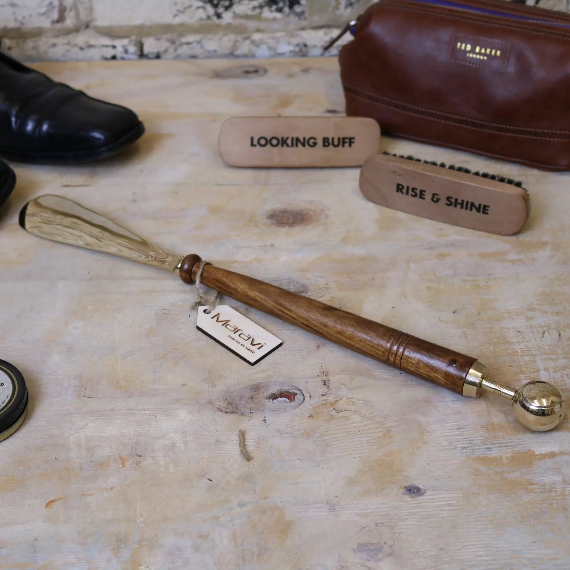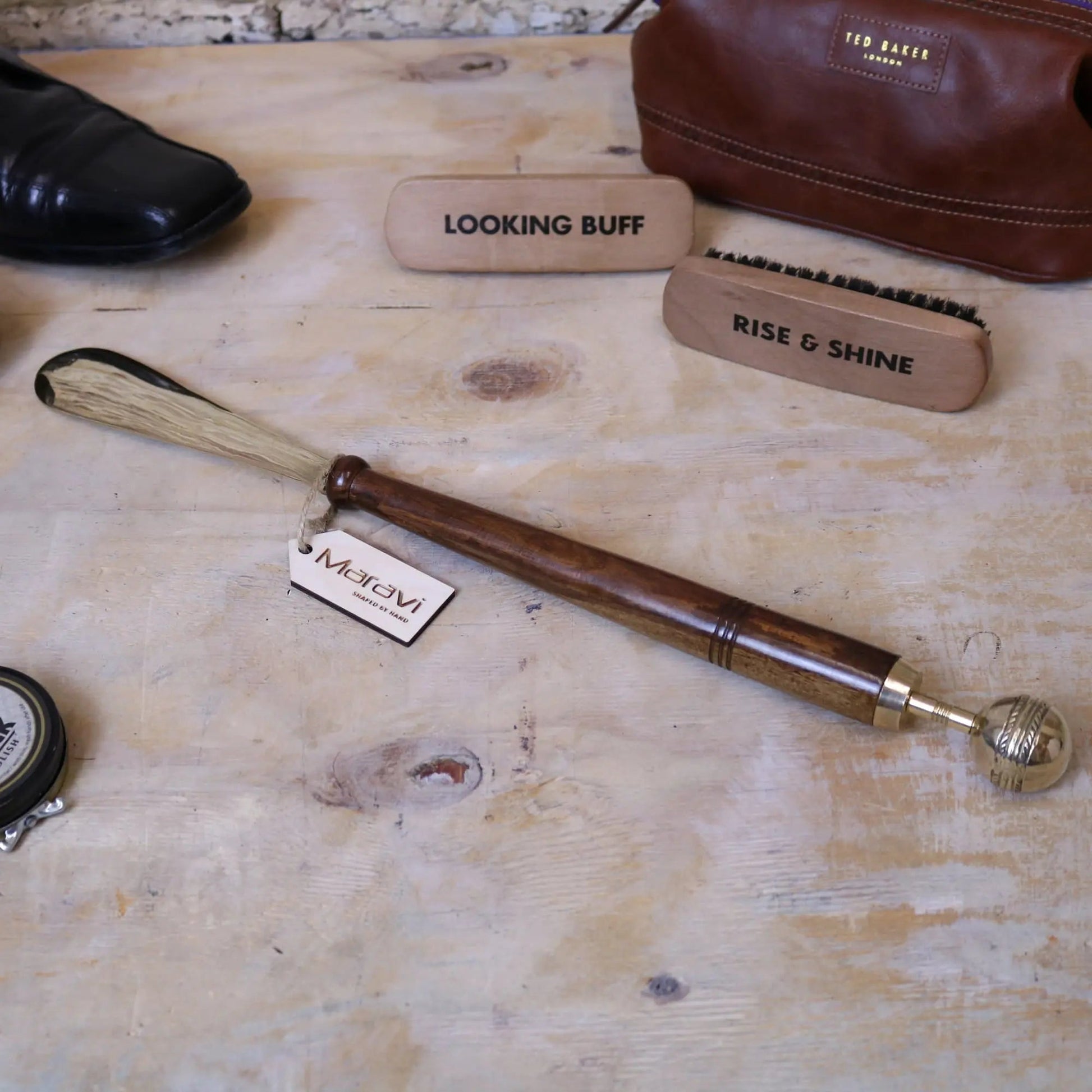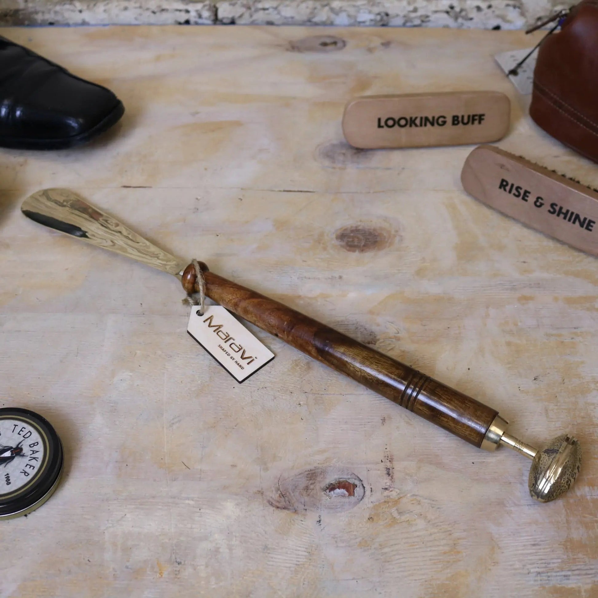 Upgrade your daily routine with the Kalanka Long Shoe Horn. Combining antique charm with functional design, this shoe horn is a must-have for anyone who values quality and style in their everyday accessories.o