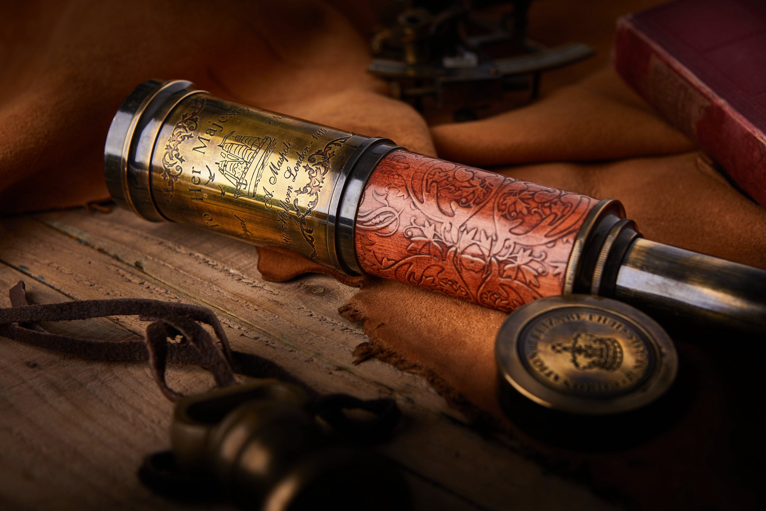 Handcrafted Half Leather Carving Functional Telescope